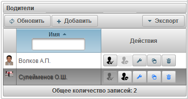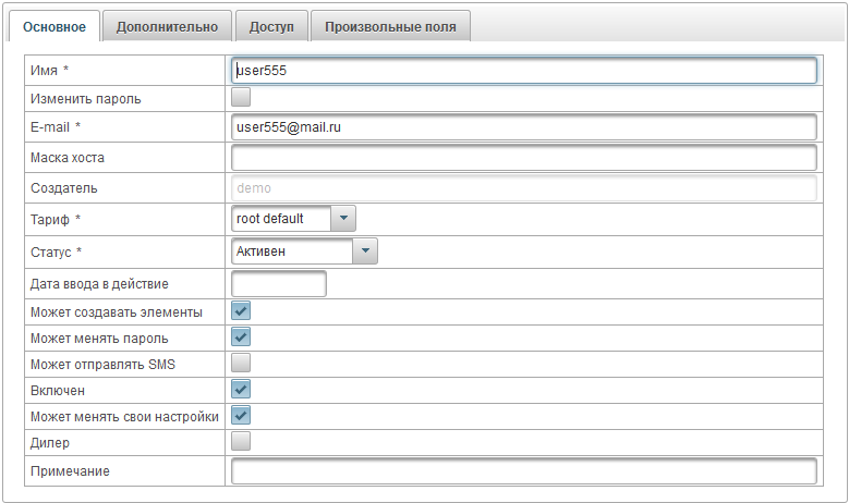 Список доступных панелей зависит от прав пользователя и выбранного интерфейса (интерфейс пользователя или интерфейс менеджера).