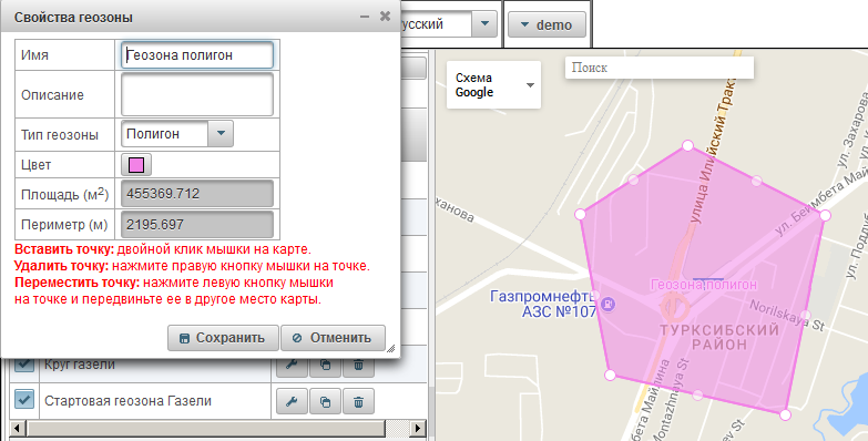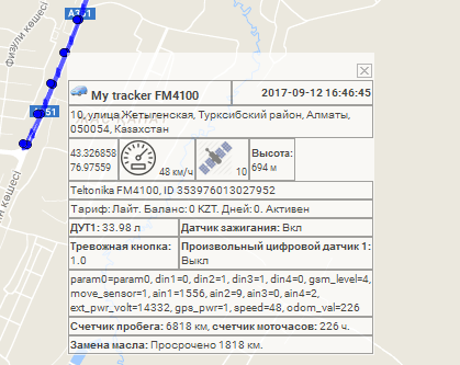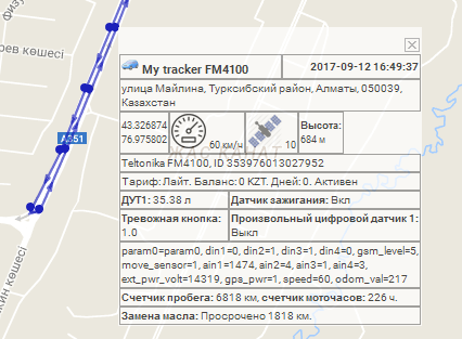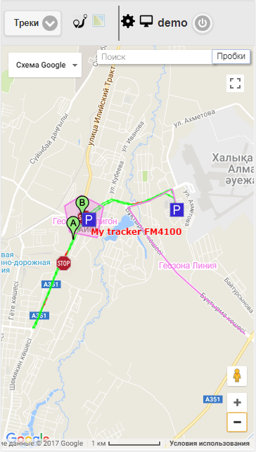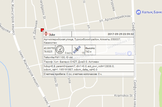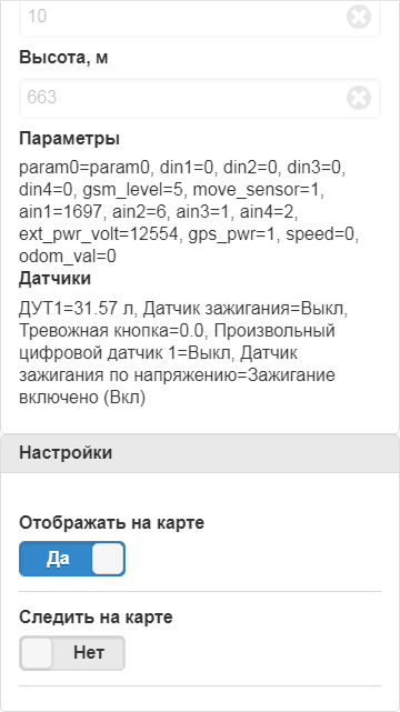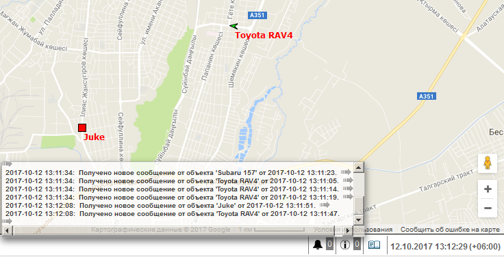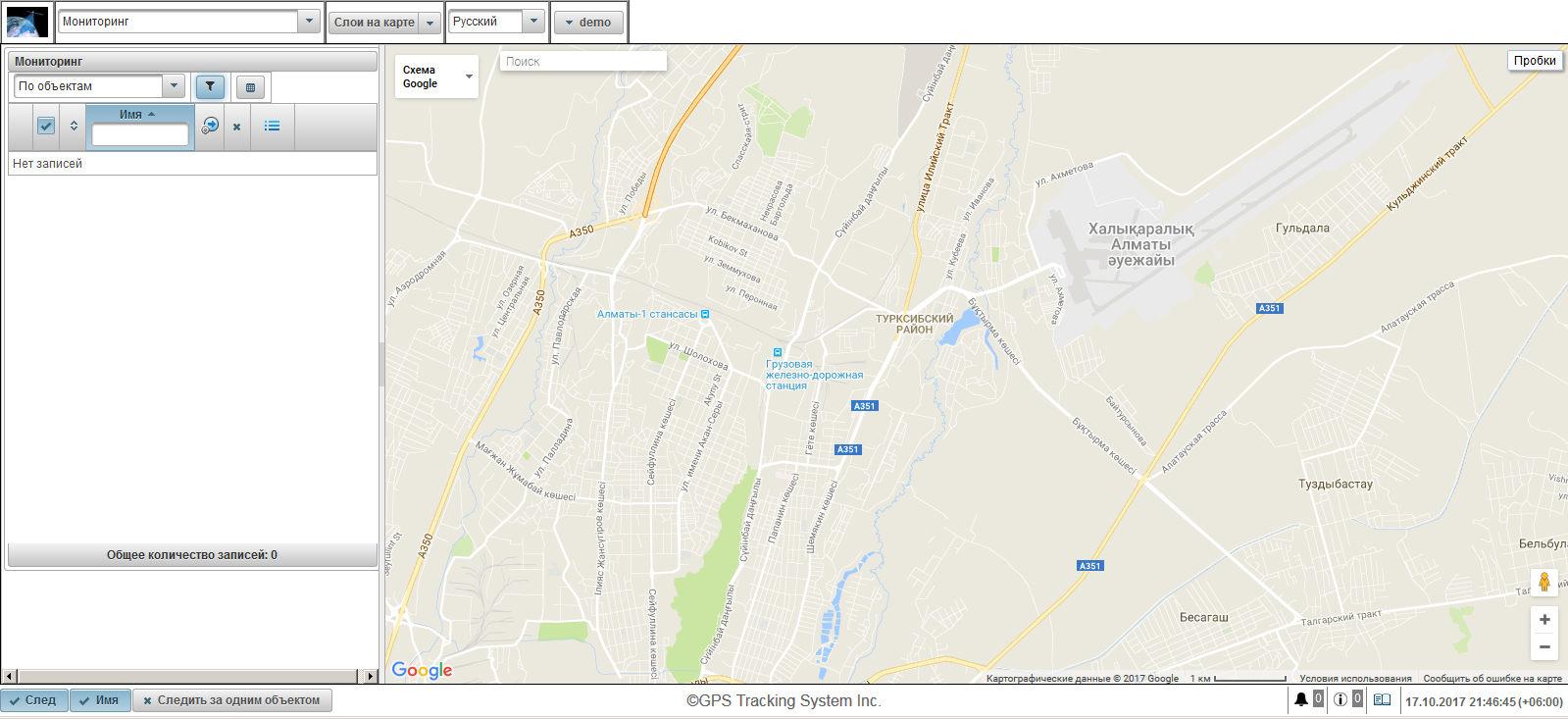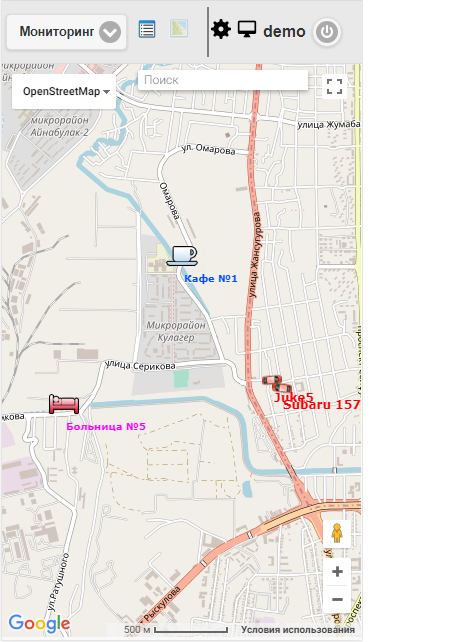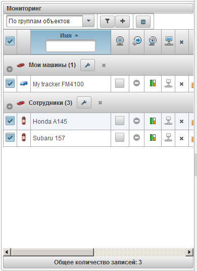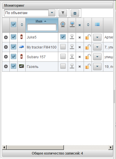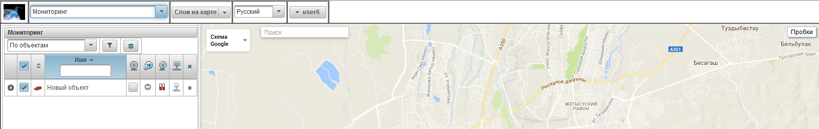 Также он появится в панели "Мониторинг". Чтобы объект отобразился в центре карты, кликните по имени объекта в списке.