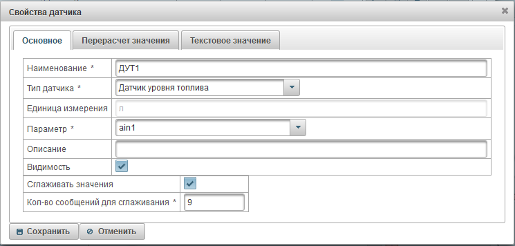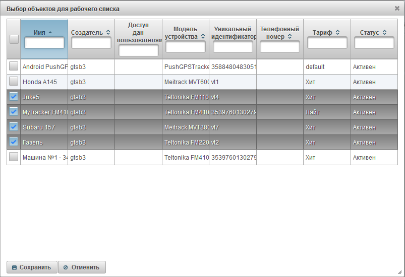 Откроется диалог создания нового объекта. В поле "Имя" введите имя объекта, в поле "Модель устройства" выберите модель устройства из списка, в поле "Уникальный идентификатор" введите уникальный идентификатор (IMEI или серийный номер) объекта, в поле "Телефонный номер" введите телефонный номер сим карты, вставленную в устройство. После выбора модели устройства появится справа кнопка