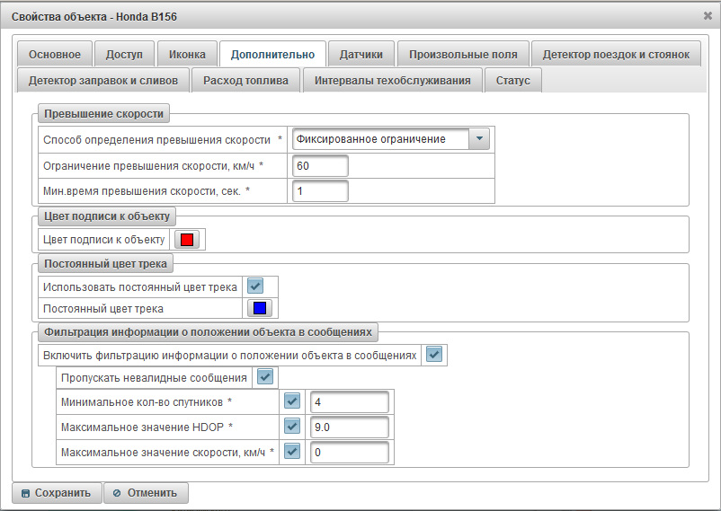 Все сообщения от объекта фиксируются в базе данных. Но в случае выбросов данных, погрешности GPS приемника могут исказить подсчет пробега и различные показания в отчетах. В этом случае можно будет включить фильтрацию информации о положении объекта в сообщениях.