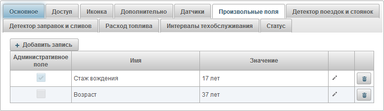 Для добавления произвольного поля нажмите на кнопку "Добавить запись".