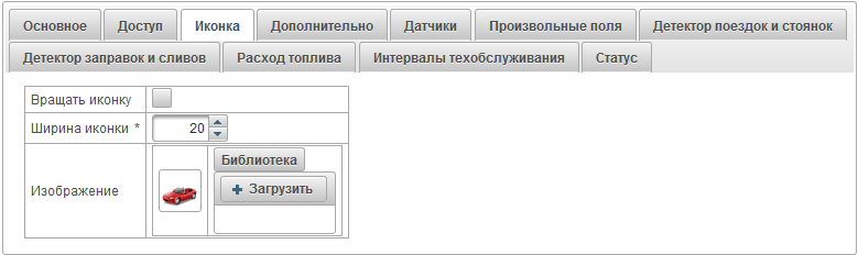 Изображение иконки объекта. Можно выбрать иконку из стандартной библиотеки нажав на кнопку "Библиотека". Можно также загрузить свое собственное изображение, нажав на кнопку "Загрузить".