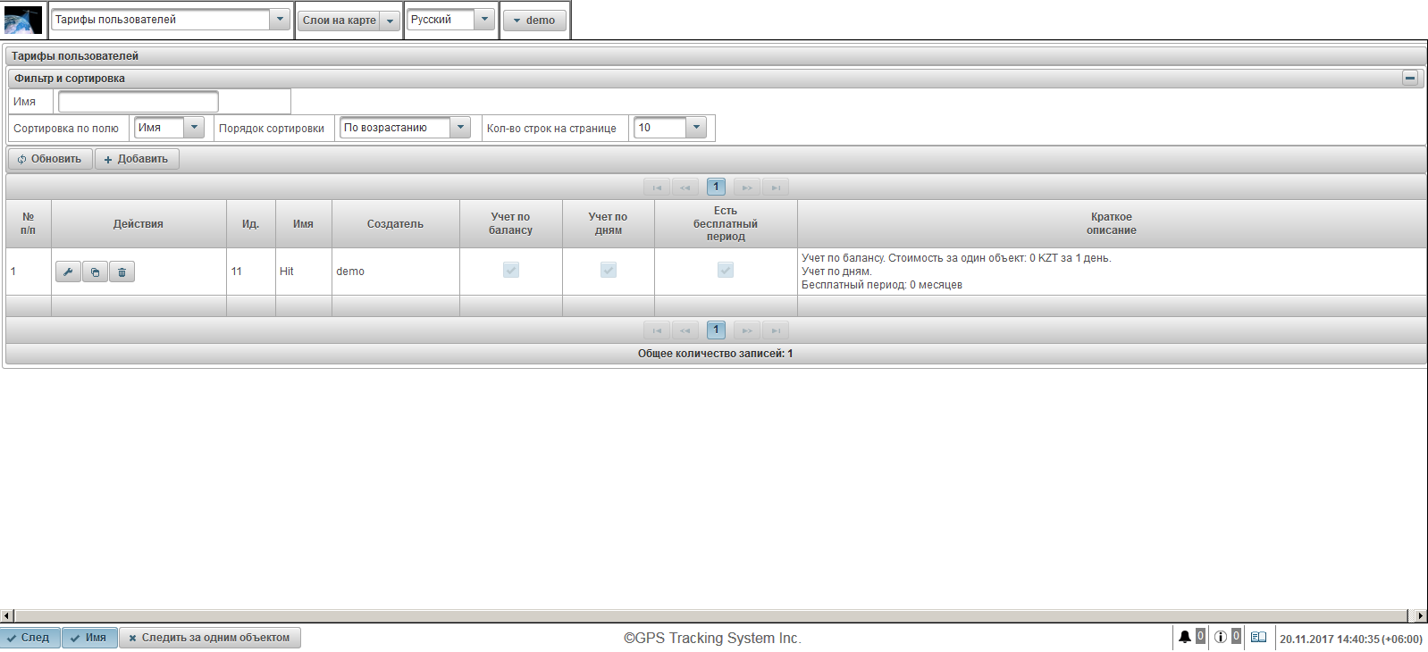 Панель "Тарифы пользователей" доступна только для дилеров и позволяет настроить тарифы для пользователей дилера и включить биллинг. Можно ограничивать действия пользователей и назначать стоимость услуг. Можно задавать минимальный баланс, при котором блокировать пользователя и многое другое.